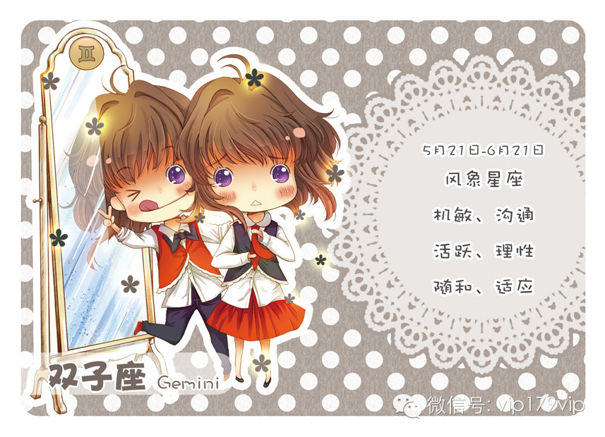 从双子身上很少感受到爱,因为双子的爱就想是一阵风一样,在你不知道是时候来了,却会在你想永远拥有的时候飘走了。是你怎么想捉也捉不住的。可是却会因为曾经接触过而恨开心幸福。因为双子身上充满着快乐因子,让人不自觉的去喜欢他。